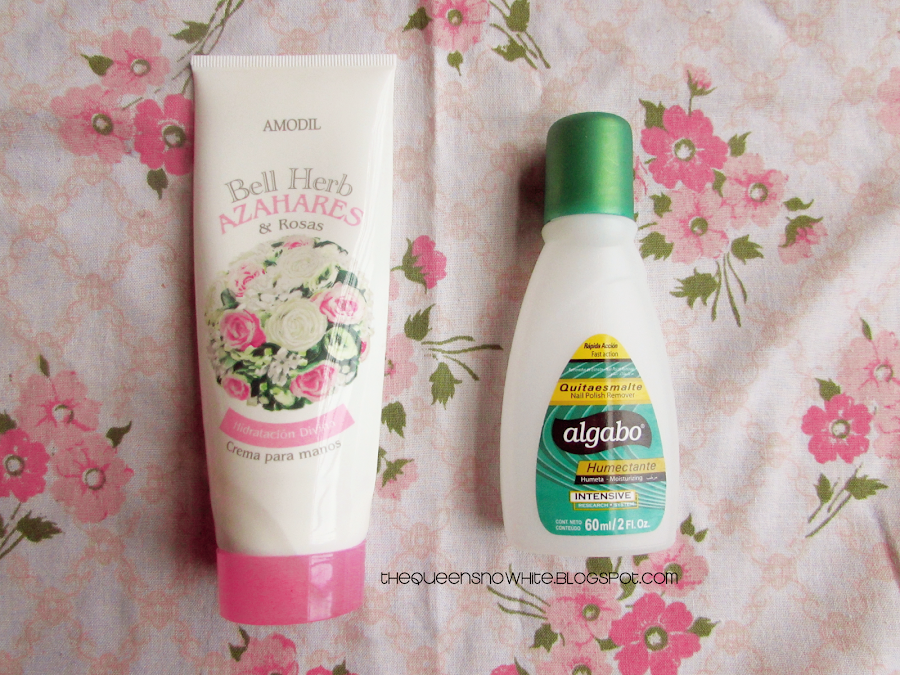 Continuando con las manos, terminé una crema para manos (también de la marca Amodil) y un quitaesmalte de Algabo.