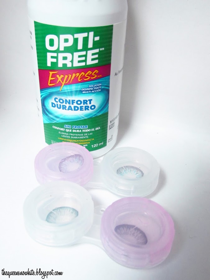 Se me vencieron los circle lenses Ellen Panda Blue y los GBT Gray de KLensPop y con ellos se fue la solución para lentes de contactos Opti-Free Express.
