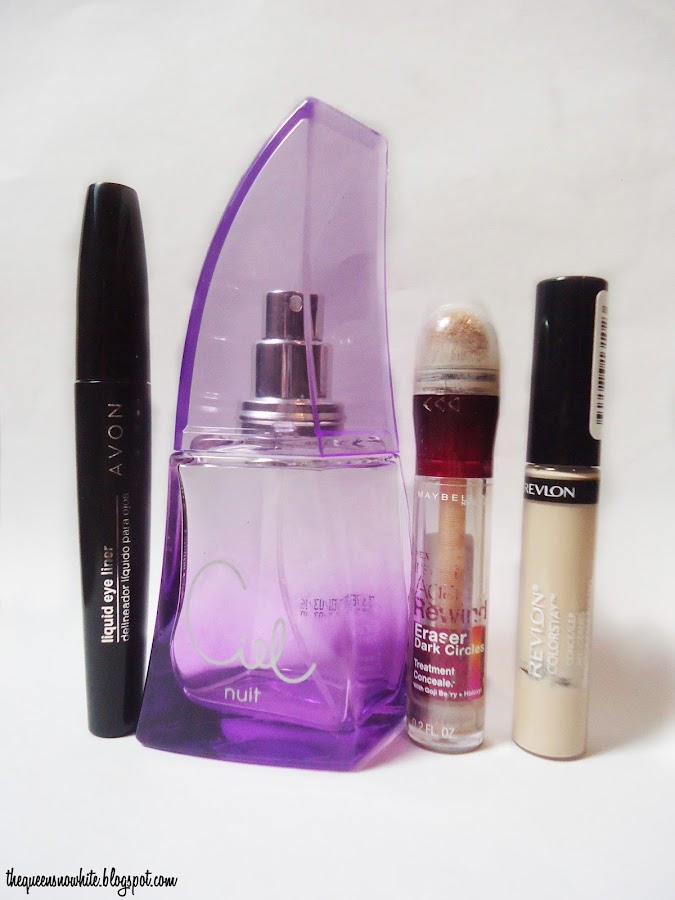 Gracias al Project Pan logré terminar estos cuatro productos que tenía desde hace tiempo: el perfume Nuit de Ciel, el corrector Age Rewind de Maybelline (reseña acá), el corrector de Revlon Colorstay (reseña acá) y el delineador líquido negro de Avon (reseña acá).