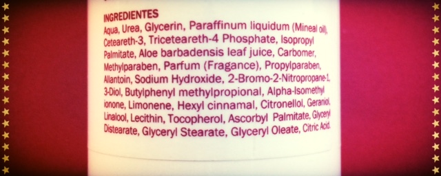 Urea al 10% . Es un componente natural que produce el cuerpo de manera natural en procesos como: regular el el sistema de retención de líquidos, mantener la presión sanguínea adecuada para eliminar los excesos de toxinas... Aunque es creada de manera sintética por laboratorios para mejorar la hidratación de la capa cutánea mas externa y para que la piel retenga el agua.