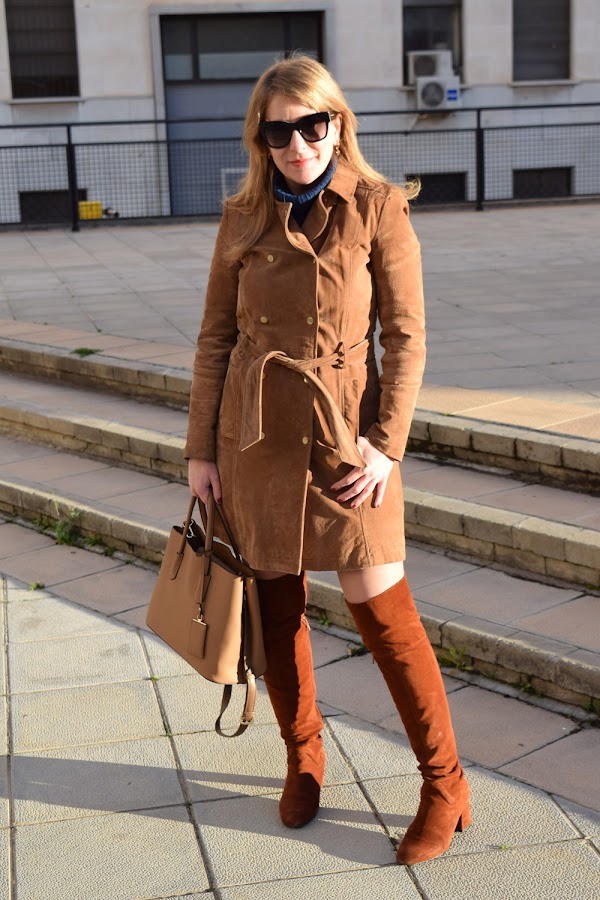 Con prendas como las de hoy, con el toque del trench de ante, me siento muy femenina y segura de mis actos.