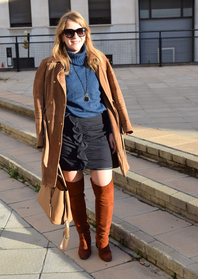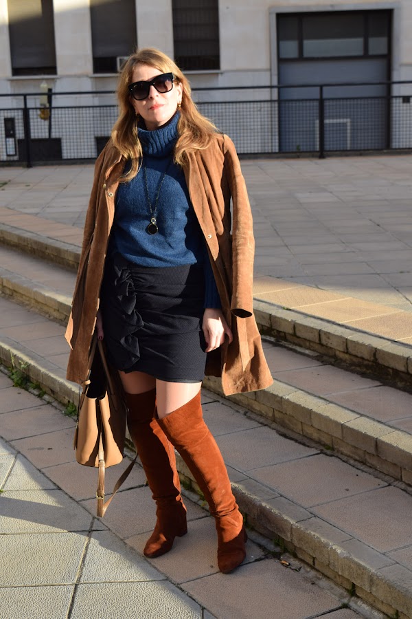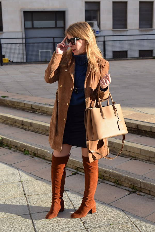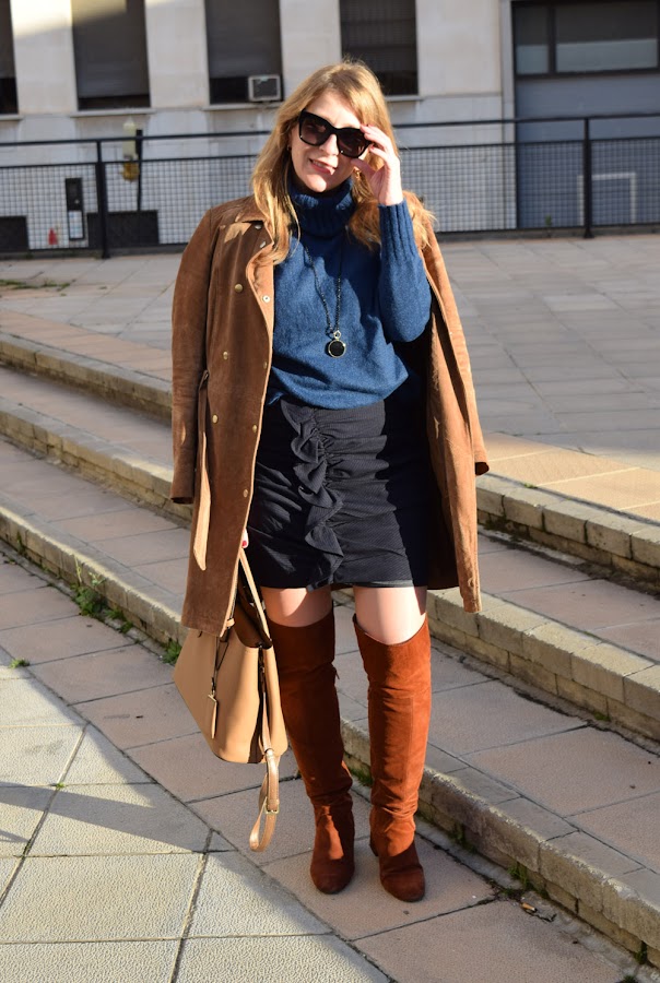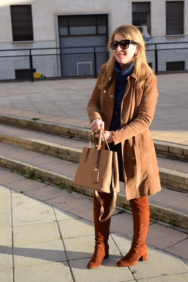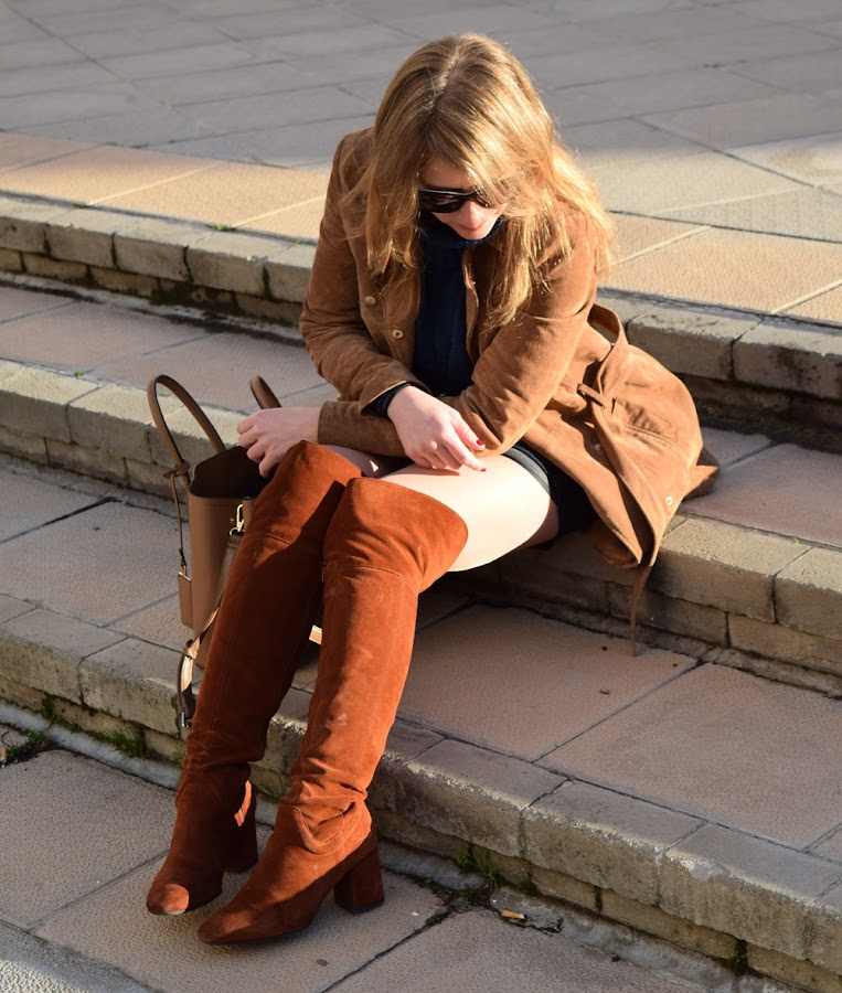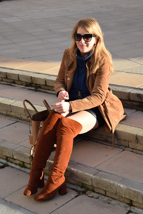 Un conjunto que veo muy combinable de diversas maneras, para el que en esta ocasión elegí botas altas por encima de la rodilla y complementos marrones.
