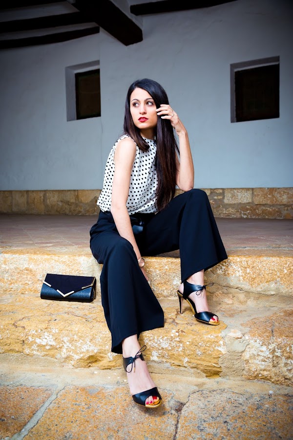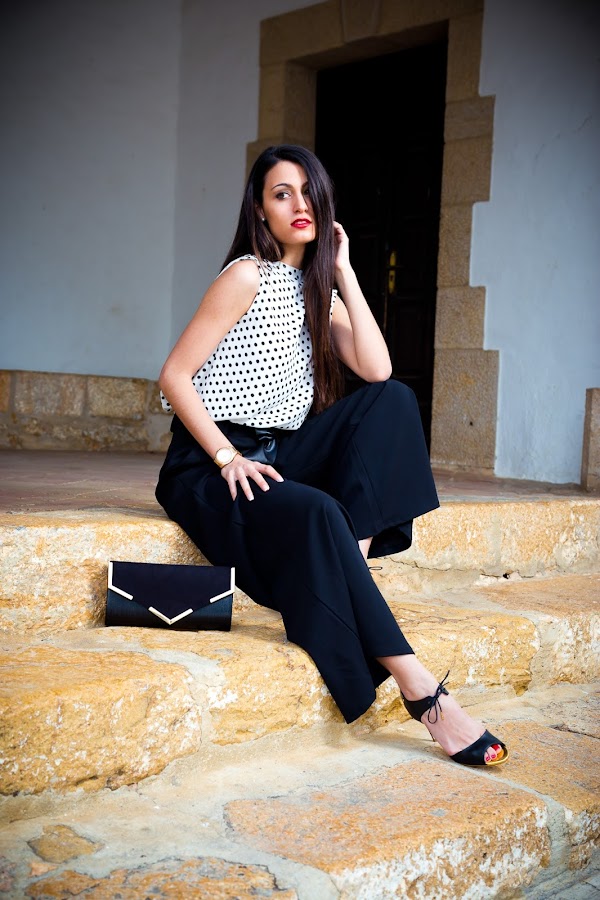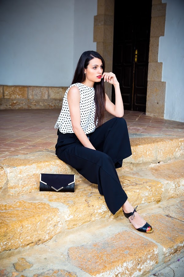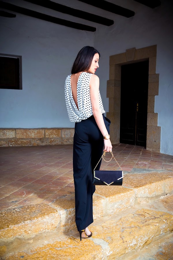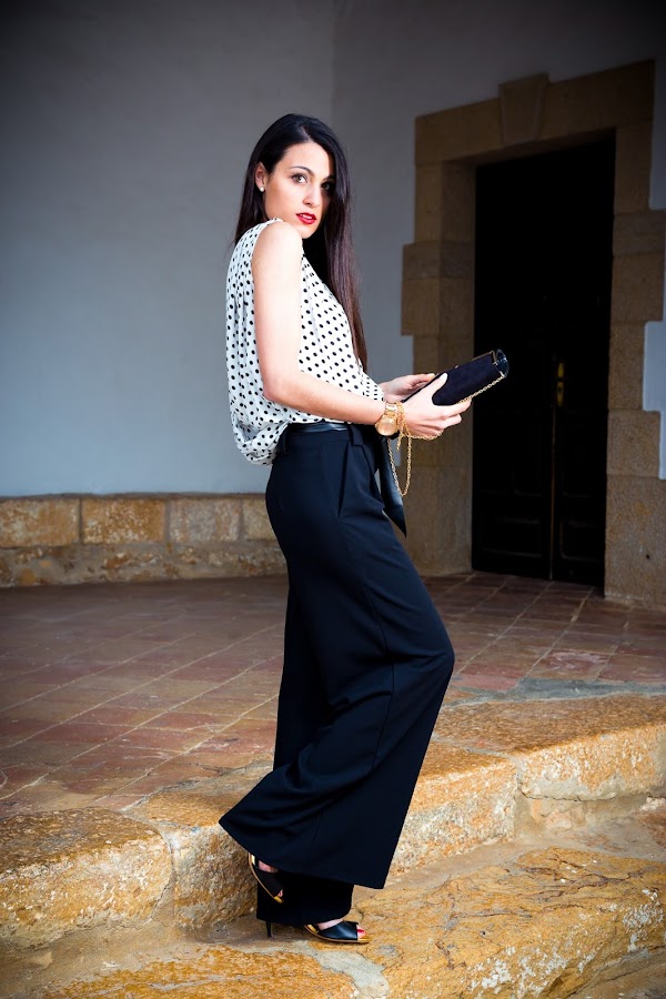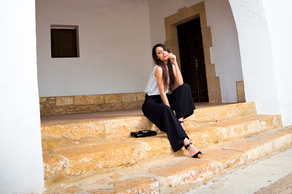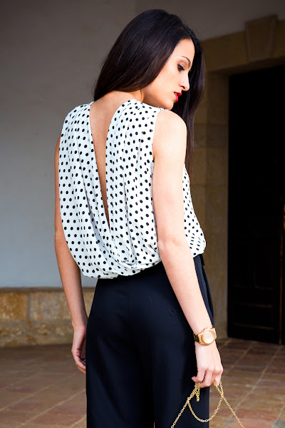 He de decir que la blusa esta pensada par llevar justo al revés. Yo me he puesto el escote en la espalda. Me parece que con el pantalón palazzo queda genial así. ¿Qué os parece?