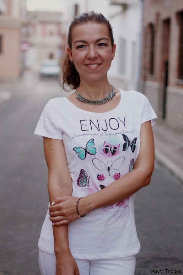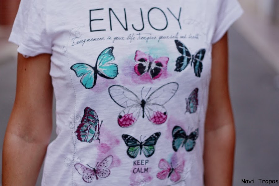 La camiseta es un regalo que me trajo mi madre de Bruselas, aunque me consta que la eligió una persona con un gusto exquisito y que conoce bien mi amor por las mariposas.