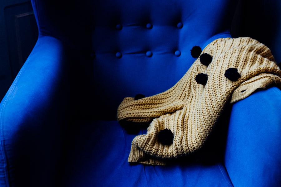 Solo necesitas, lana, tijeras, cartón o aparato para hacer pompones, aguja de lana y la prenda a customizar.