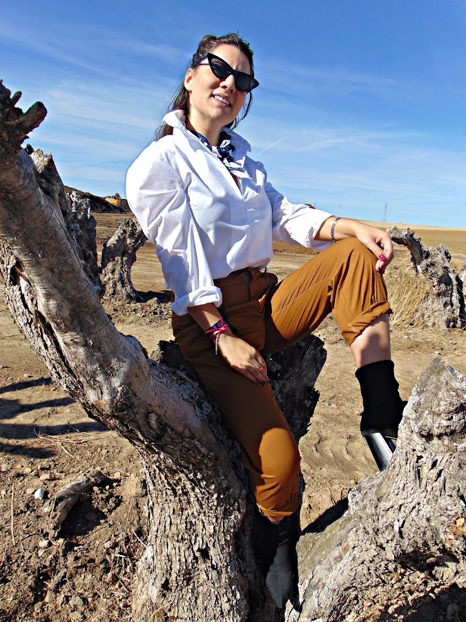 El pantalón es de una página que se llama Romwe, los colores tierra viene pisando fuerte y lo he cobinado con estos botines estilo calcetín. La camisa es de Shein, me pareció lo más cuando la ví.