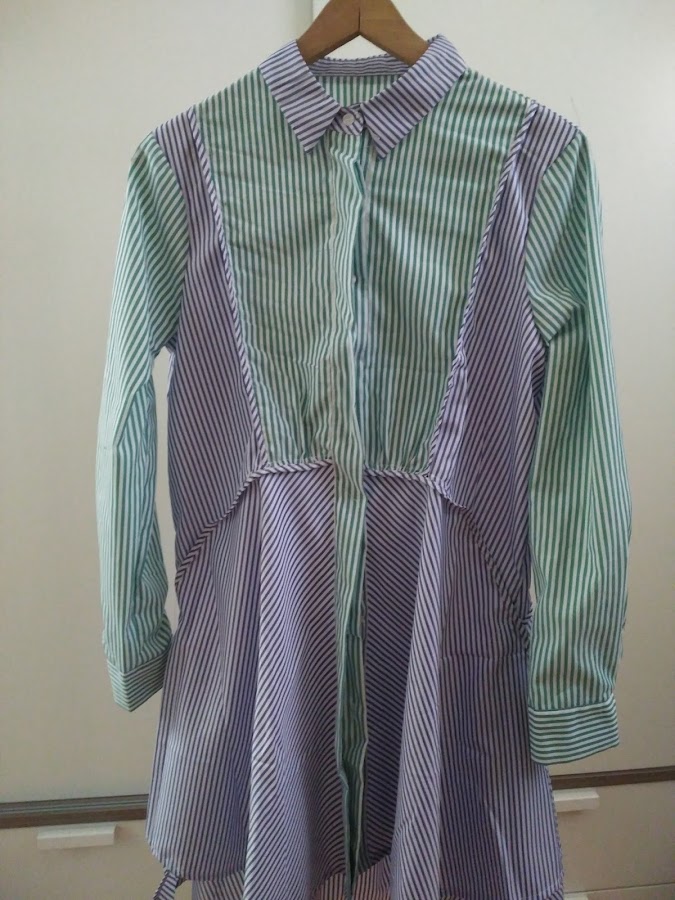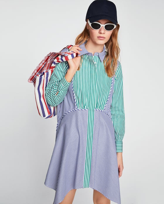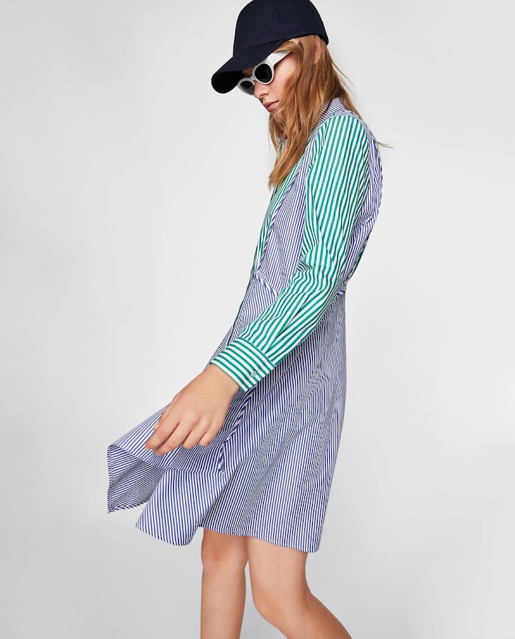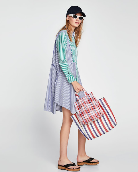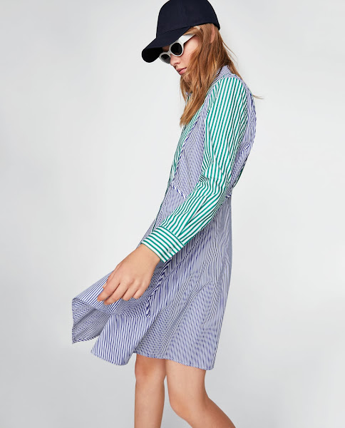 Como buena muestra de ello os enseño este precioso vestido camisero que une varias tendencias en uno la primera que es asimetrico y segunda que une rayas de diferentes grosores y colores en vertical y horizontal, de la marca Inditex que tambien podeis encontrar en Shein a mejor precio. Si os gusta lo podeis encontrar AQUÍ.