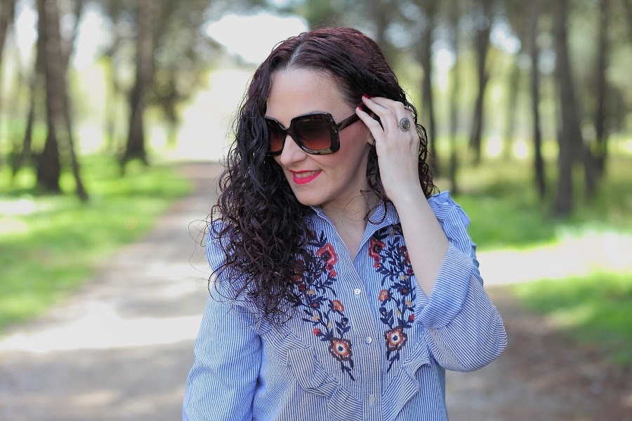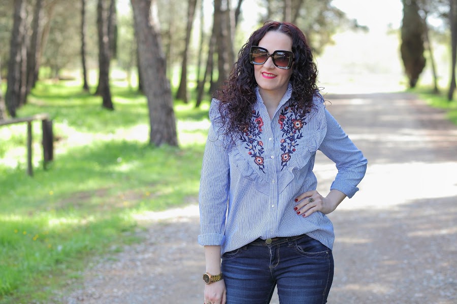 Confieso que cuando compré esta camisa no las tenía todas conmigo de que no la fuera a devolver. Al final no tomé esa decisión porque me gustaba tanto el bordado de la espalda que decidí darle una oportunidad y ahora es que me encanta. Creo que tiene un corte que la hace muy estilosa, además de que combina una gama de colores muy bonitos. Como veis, es de esa clase de prendas que no necesitan much ...