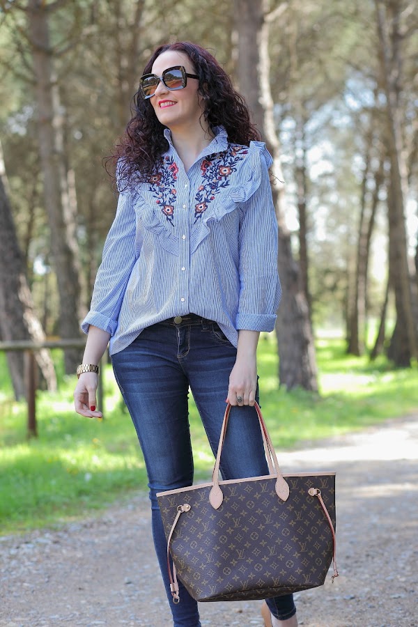 Una de las prendas más de tendencia esta temporada otoño/invierno es la camisa de rayas, esa prenda básica que prácticamente todas tenemos en nuestro armario se ha reinventado y no sólo podemos encontrarla es su versión clásica rayas verticales azules y blancas, esta temporada podemos encontrarla con bordados, volantes, desestructuradas, maxi largas..... Yo soy adicta a las camisas, me parecen pre ...