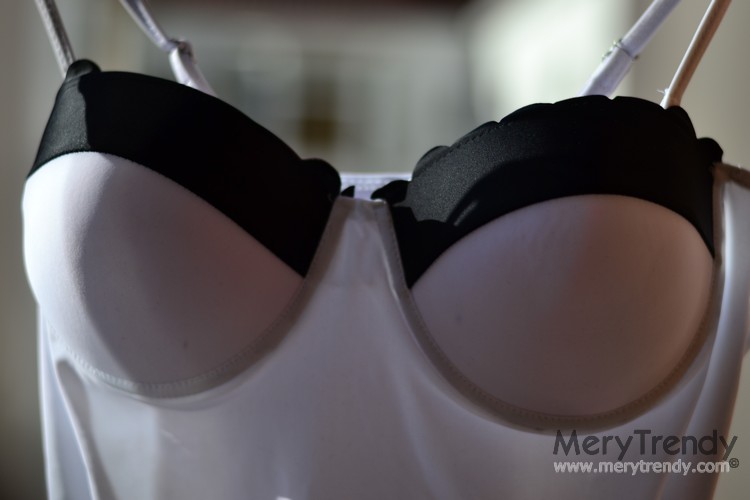 Por eso, para debajo, he pensado meterle este traje de baño de tipo push up en blanco y negro, también de Romwe, que incluso queda bien a cuerpo sólo con la falda, como top o corpiño, utilizando la camisa como chaquetilla por si refresca.