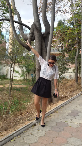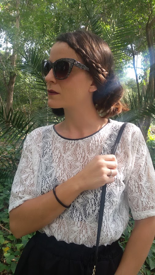 Al ser toda la parte superior del outfit de encaje utilicé un sujetador negro también de encaje para que se notara el contraste de ambos colores.