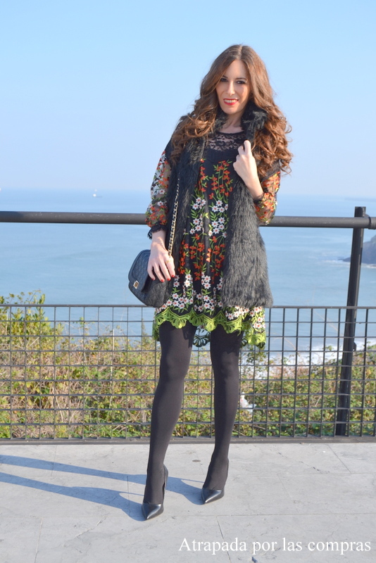 Comienzo el año con un look muy especial con un vestido deROCOCOA CANDÁS. Un vestido de estilo romántico que fusiona tres tendencias: encaje, transparencias y estampado floral, es sin duda una de esas prendas que llaman la atención y que, dependiendo de cómo lo combinemos le podemos dar mucho uso. En este caso lo combiné con un chaleco de pelo pero podemos darle un aire totalmente distinto con una chaqueta de punto larga o con una perfecto de cuero y de calzado opté por zapatos de tacón negro pero con una bota mosquetera os puedo asegurar que queda genial, prometo otro look con una combinación diferente.