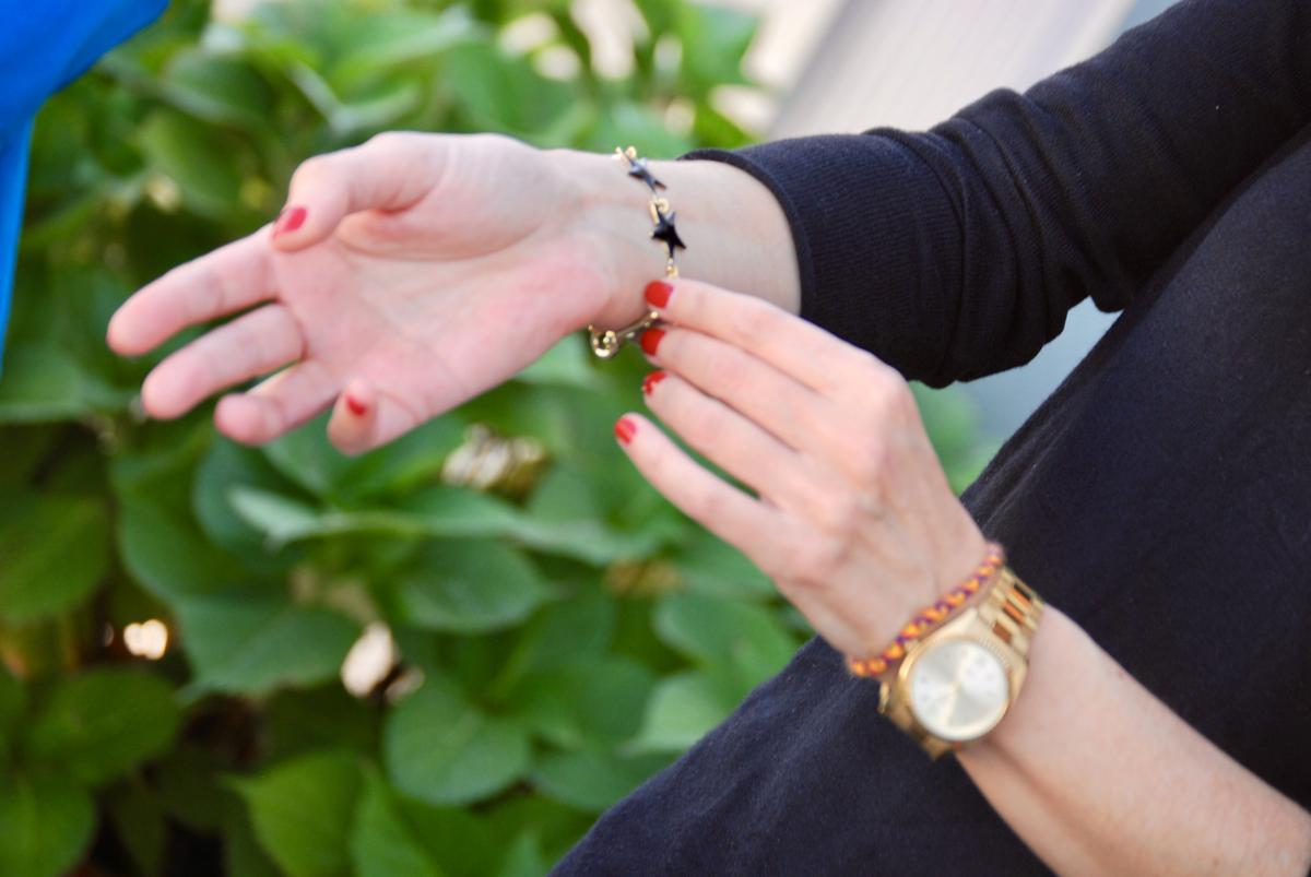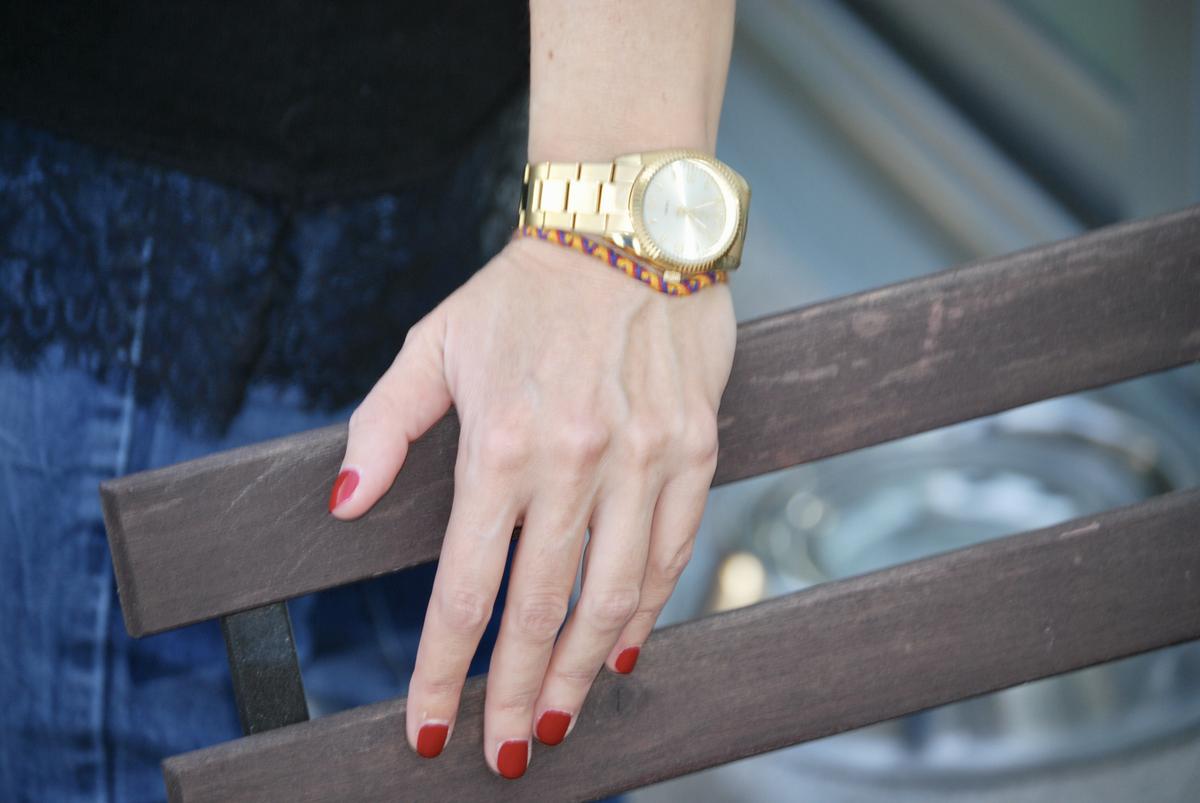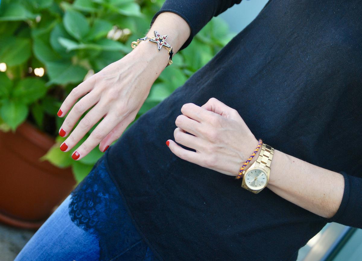 Mi pulsera preciosa de estrellas, que al principio cuando la compré me parecía un poco exagerada, pero luego puesta queda genial, me encanta el resultado, reloj dorado a juego con el tacón de mis bebés y poco más para el look de encaje y cobre…
