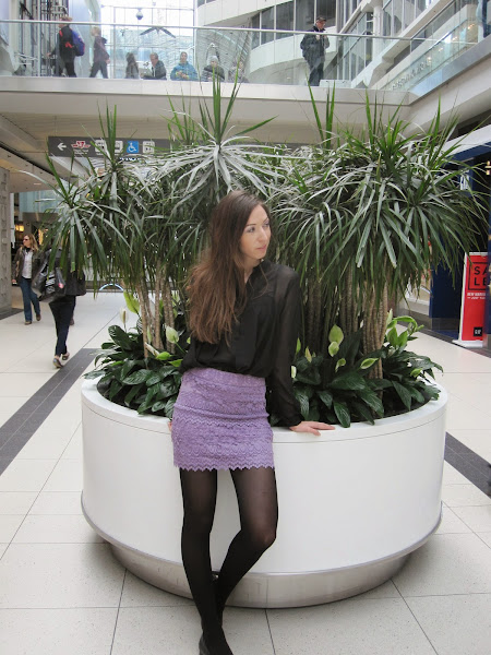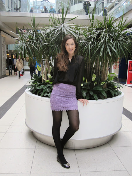 Como sabes, cuando voy de shopping, opto por un look con pantalones para probarme todo lo que quiera sin complicarme demasiado. En esta ocasión me decante por una falda de encaje muy femenina y Primaveral y como el cielo estaba encapotado y algo oscuro, preferí combinarla con una blusa de gasa negra y complementos en el mismo color para adaptarla un poco a nuestro prolongado Invierno.