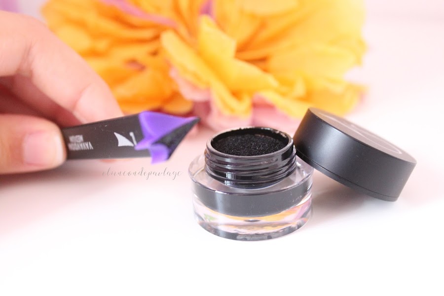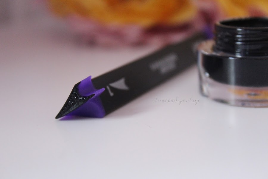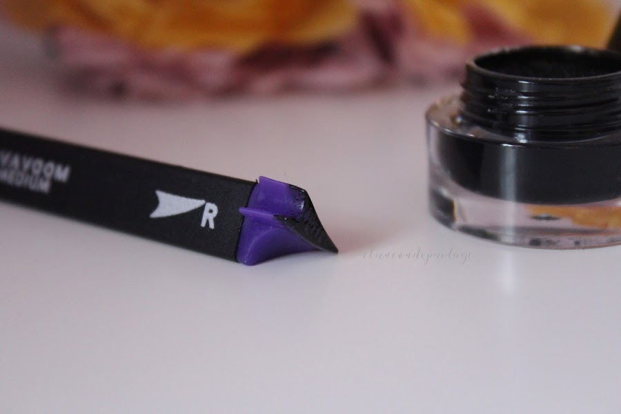 Es un palito que en ambos lados tiene el sello del rabillo del ojo para el izquierdo y para el derecho, su función es mojarlo en el bote y colocártelo en el ojo como verán a continuación. El pincel la verdad que no sé para que es, pero no creo que me haga falta.