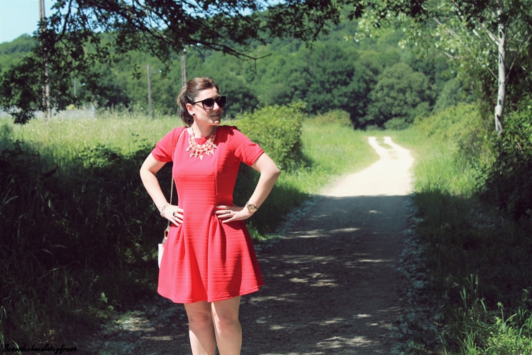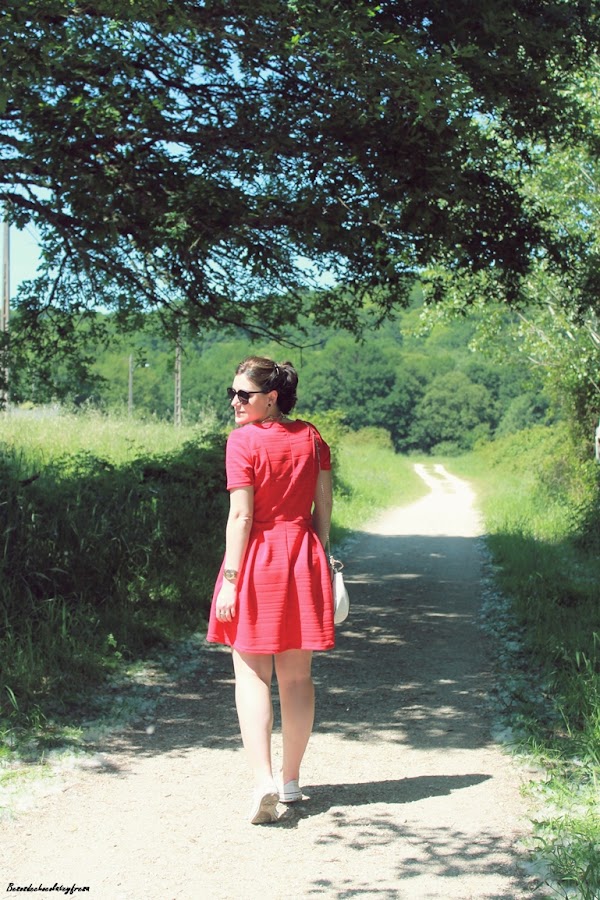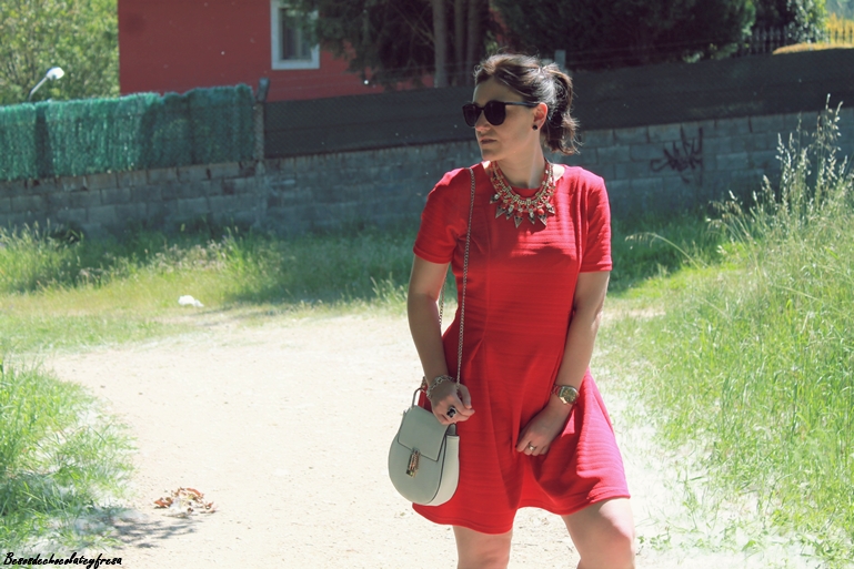 Para el look de hoy he optado por un vestido en rojo pasión , para crear un outfit con fuerza. Un vestido que podéis encontrar en mi tienda @besosdechocolateyfresashop de manga corta y falda godet, un estilo de patronaje en el que un trozo de tela se añade a la principal para dar más vuelo a la misma.