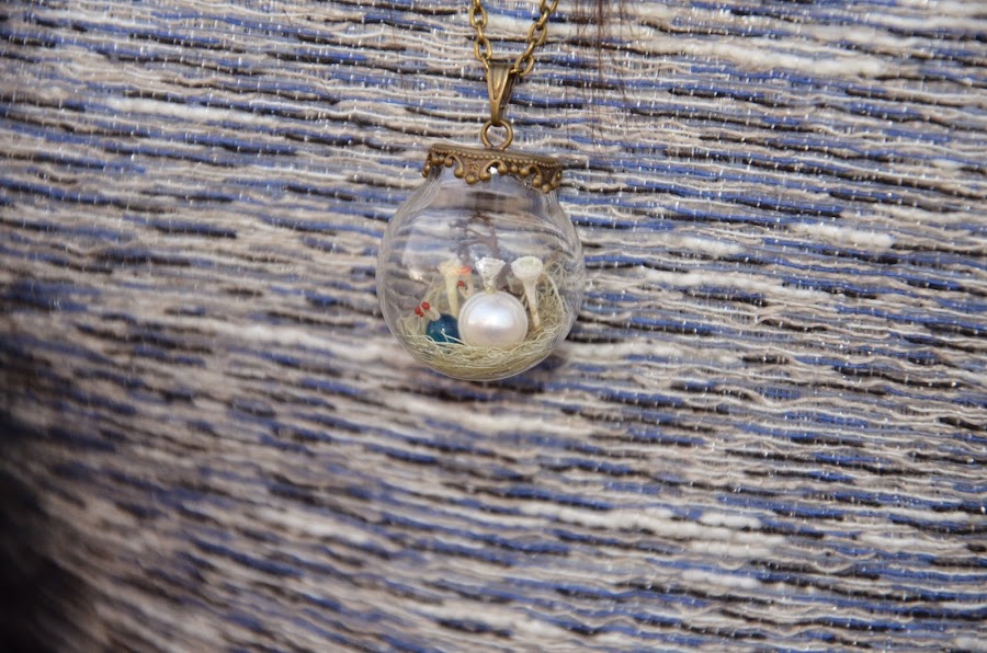 Si visitáis su página de Facebook podréis ver todas sus piezas, creadas artesanalmente y con materiales de mucha calidad como el zamak, cristal, cuero y lo mas original es que también usa elementos naturales como perlas de agua dulce o líquenes!!!