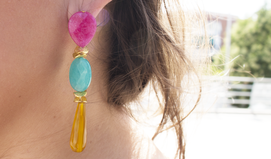 Nuevamente los complementos son de mi firma JHC creaciones. Los pendientes son de jade y ágata e intentan mezclar tonos muy diferentes pero que casan a la perfección. La cartera de mano es todo un básico, la mezcla de tonos dorado y negro en los complementos siempre os ayudarán a hacer más fácil las combinaciones sin dejar de otorgar a vuestros looks un toque especial.