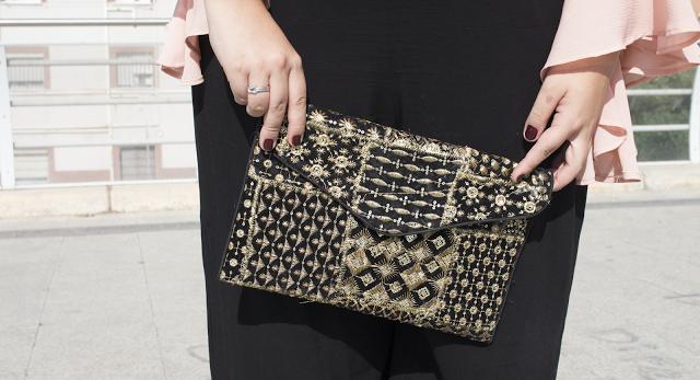 Nuevamente los complementos son de mi firma JHC creaciones. Los pendientes son de jade y ágata e intentan mezclar tonos muy diferentes pero que casan a la perfección. La cartera de mano es todo un básico, la mezcla de tonos dorado y negro en los complementos siempre os ayudarán a hacer más fácil las combinaciones sin dejar de otorgar a vuestros looks un toque especial.