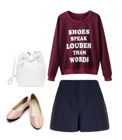 Esta sudadera burdeos combina con bermudas añil, bailarinas nude y bolso-mochila blanco.