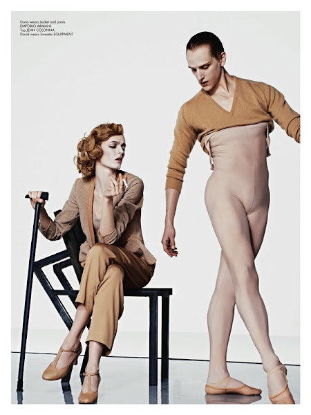 Para esta editorial de moda, se contó con un bailarín Americano que revolucionó la escena Rusa por ser el primer bailarín de esa nacionalidad, en ocupar el puesto de primer bailarín del Teatro Bolshoi de Moscú, se trata de David Hallberg (Rapid City, Dakota del Sur, 1982), una de las primeras figuras del American Ballet Theatre de Nueva York (ABT).En la editorial tara crear las escenas, la instructora es la modelo y top Rusa Daria Strokous