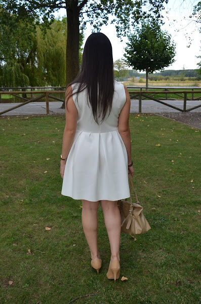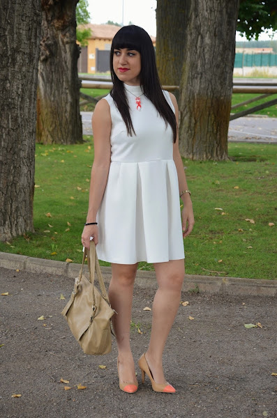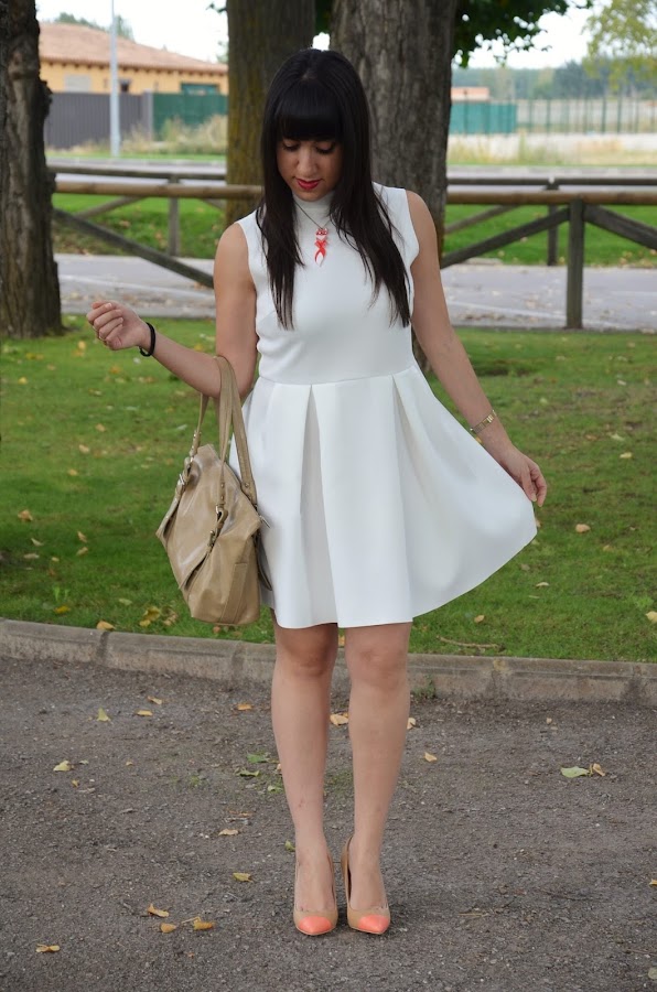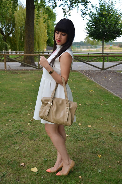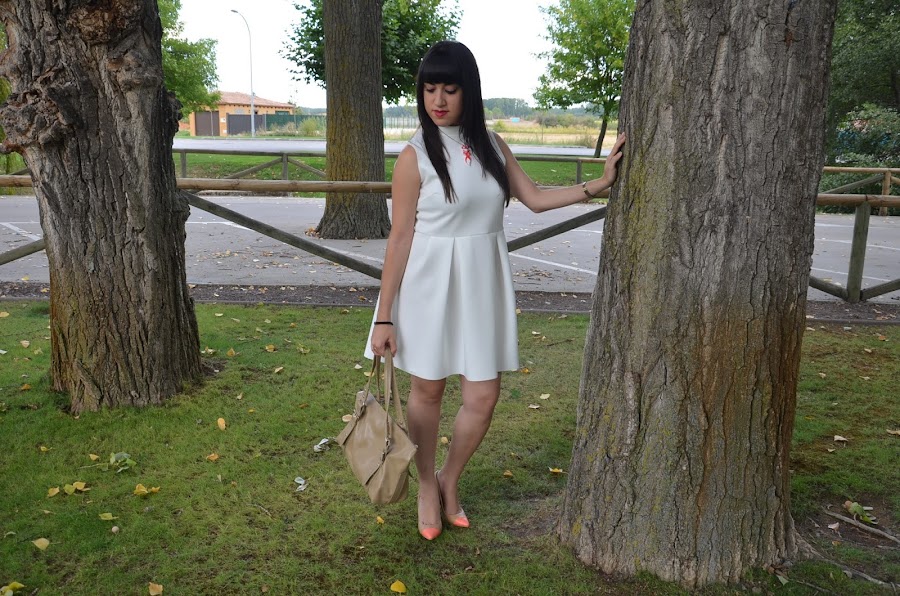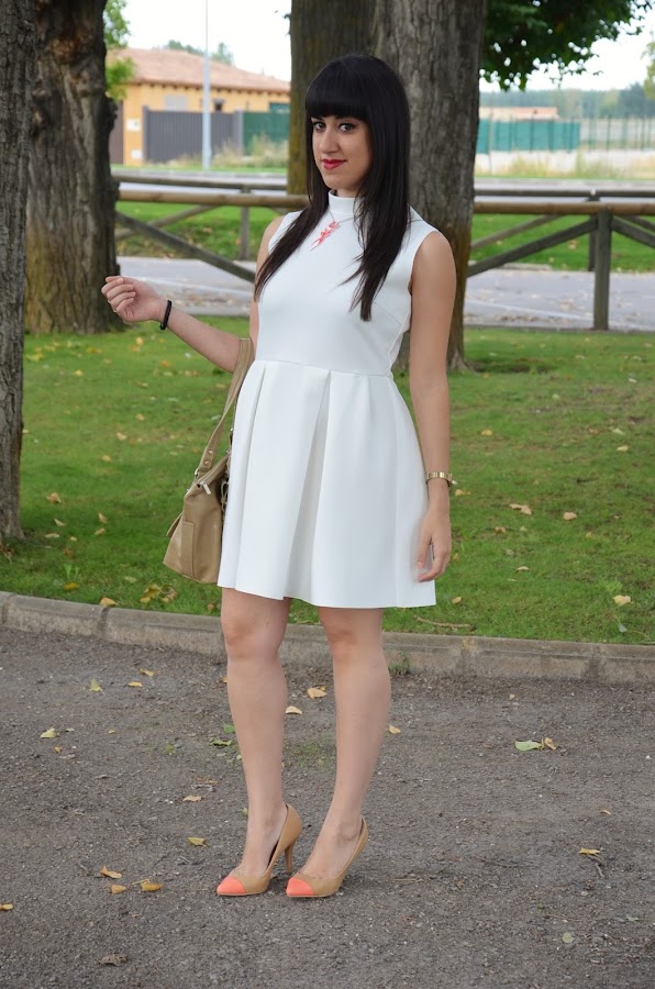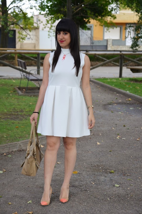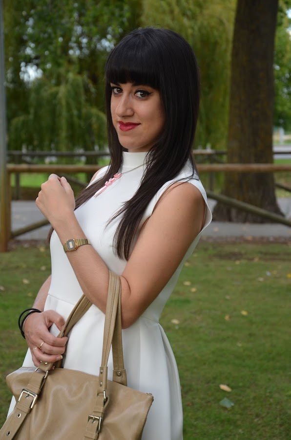 Vamos con el look de hoy, seguimos con vestidos pero esta vez toca uno de entretiempo, me apetecía un vestido blanco, sencillo, que lo pudiera tener de fondo de armario. Este es de Shein, básico con cuello alto y sin mangas, de estilo lady. En cuanto a la tela es una especie de neopreno. La talla que yo pedí es una L aun que creo que una M hubiera sido mejor.