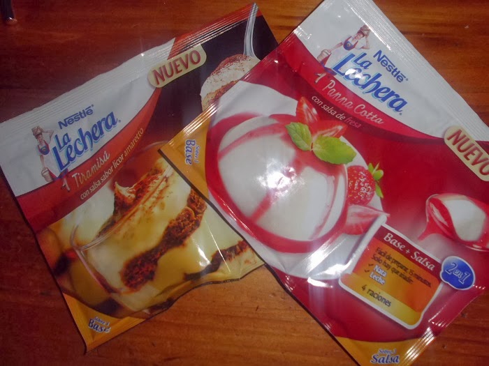 Panna Cotta con salsa de fresa y Tiramisú con Salsa sabor Amaretto. La Lechera.