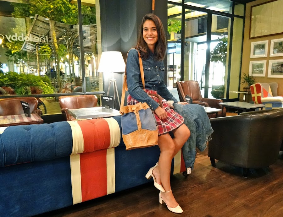 In the other look I combined a denim shirt with a plaid skirt from Pepe Jeans, trend in this fall, with a perfect shoulder denim bag also from the same brand, and a denim jacket with sheepskin inside from Levi"s.