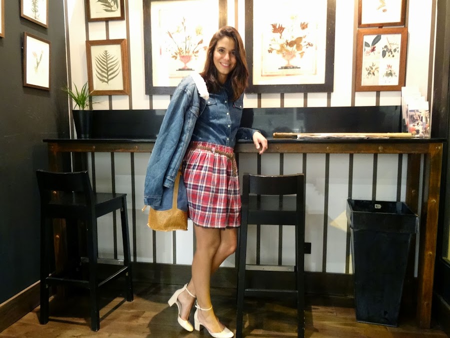 Y ya que estaba, me hice otro look enterito combinando la camisa con una falda de cuadros escoceses de Pepe Jeans, tendencia de este otoño, con un bolso bandolera ideal también denim de la misma marca, y una super cazadora vaquera con borreguito por dentro y en el cuello de Levi´s que se hizo irresistible!!!