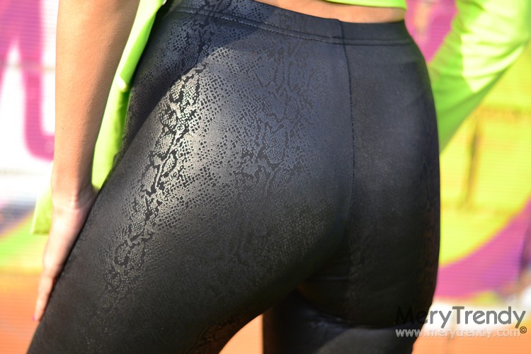 Los míos, como veis, son ajustados a la pierna y por encima de la rodilla; encerados y con print de serpiente. Como dato adicional, os diré que me los he cogido en la XS porque ceden bastante...