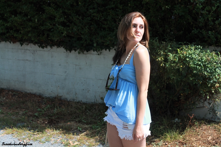 Como complemento llevo un accesorios muy cool este verano y que también nos trasporta a la época en que la tenía 15 años y se llevaban pulseras, collar y todo tipos de accesorios de conchas, esta vez lo llevo en el cuelgagafas, que me pareció original y práctico a la hora de llevar las gafas todo el día.