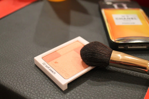 Para aplicar el colorete, nos demostró como el color que escojamos depende un 90% de nuestra ropa (alucinada quedé...y comprobamos que era verdad!). Llevaba camisa de cuadros (en el post anterior podéis ver look) y me recomendó blush prodige ( 02 soft peach), en tonos anaranjados.