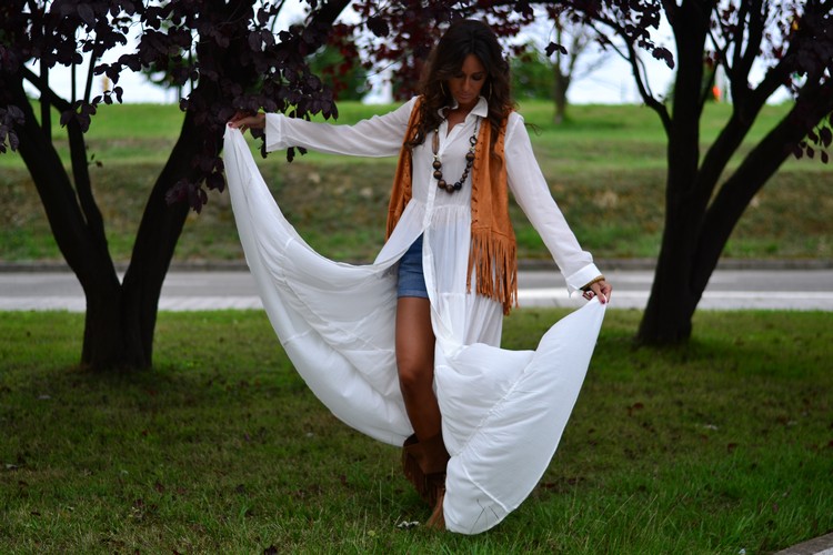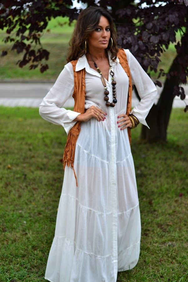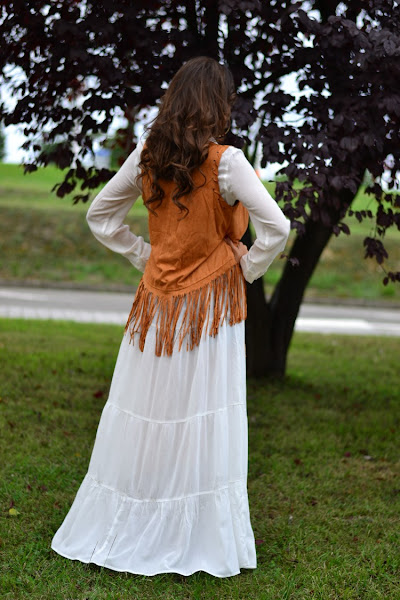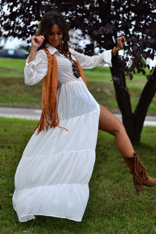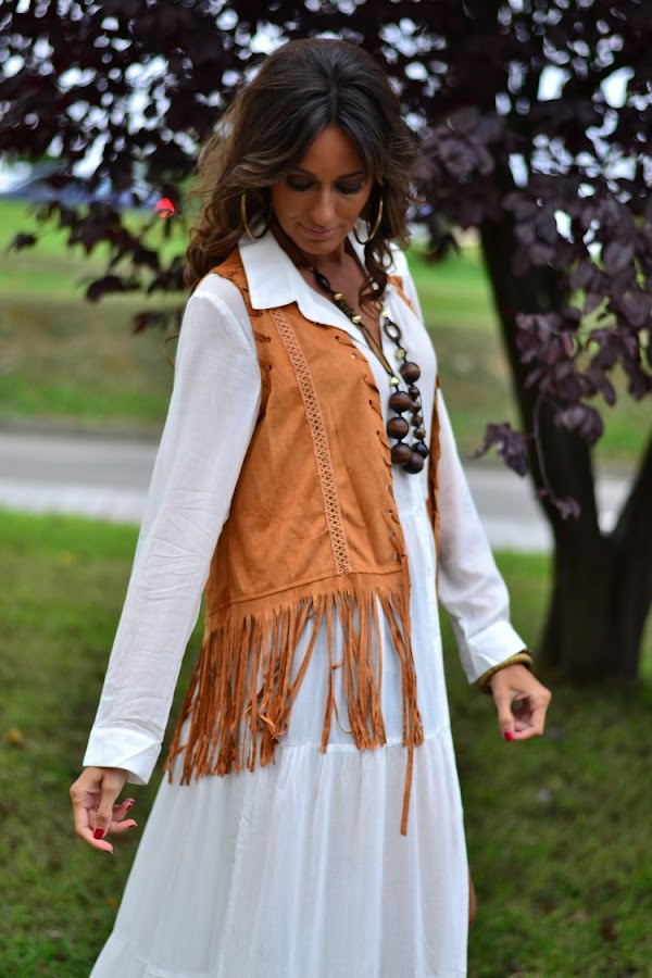 Como ya estamos en septiembre, hoy he construido el look mezclando 2 prendas más otoñales, llenas de esencia folk: un vestido largo hasta los pies de estilo fluido y un chaleco en su versión más 60s, la prenda fetiche por excelencia de las amantes de esta estética.