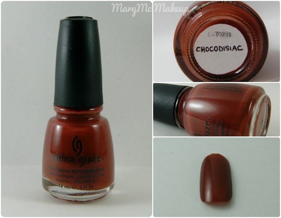 Chocodisiac: tono marrón-rojizo. No sé porqué le falta la pegatina xD Lo cogí con la idea de hacer dibujos de nail art, pero sí que lo he llevado puesto en todas las uñas y queda bastante bonito