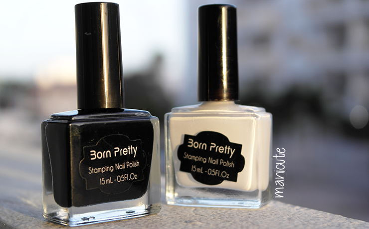 Vamos a empezar, antes de nada, por la información más objetiva: los esmaltes para estampar. Como os comentaba arriba, elegí dos colores: blanco y negro. Para qué nos vamos a engañar: quería reponer básicos. ¡Y ya está! Pero también quería salirme de los grandes clásicos de la estampación. Casi siempre he probado con Konad y en general estoy contentísima pero... creo que el precio se va una gotita de las manos.
