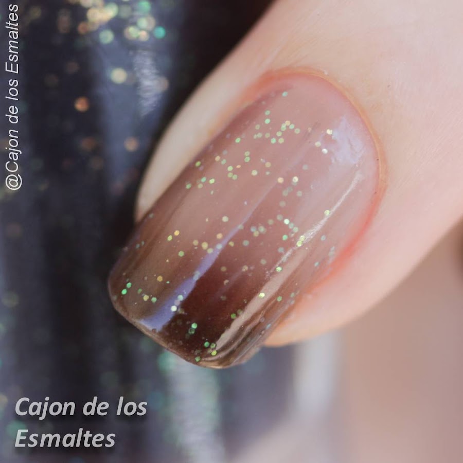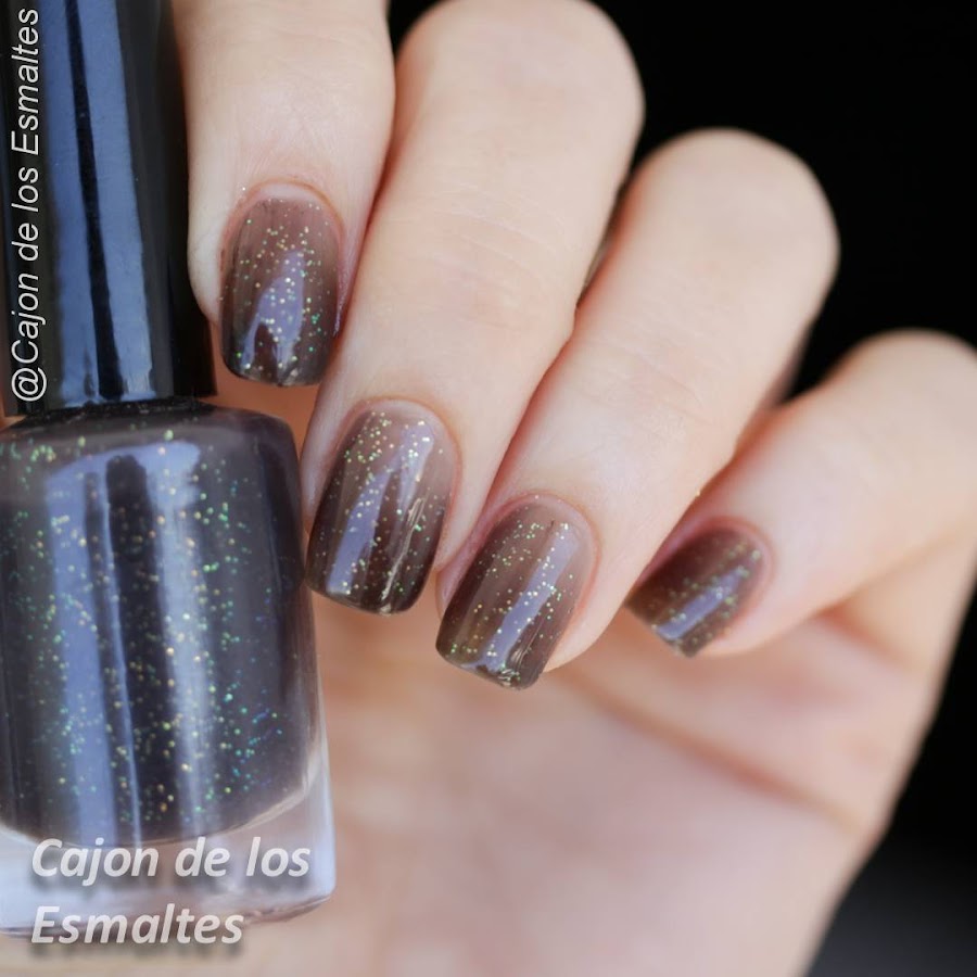 Volvemos con un esmalte "indie" o made-in uruguay de Sylvia de Bonitas Accesorios. Hace un tiempo ya les había mostrado un topper holográfico de Syl, esmaltes térmicos y de estampar. En esta ocasión volvemos con un esmalte térmico con una característica adicional, puede usarse sólo o sobre otro esmalte de base para transformarlo en térmico. Va de un tono casi transparente a un marrón oscuro...y si les suena similar a cierto esmalte ruso famoso no es coincidencia ya que fue la inspiración, al final del post les dejo la comparación.