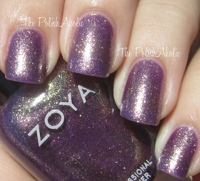 Gracias por aguantar la marea de fotos y llegar hasta acá :) Ahora les muestro el Violeta, Thuya 222, un jelly violáceo cargado de partículas doradas. También necesita tres capas para cubrir completo el borde de la uña pero al menos seca rápido.Y como bonus, le encontré un pariente famoso, es casi idéntico al Zoya Daul salvando las comparaciones de una marco B5F y Thuya que ni llega a 3.