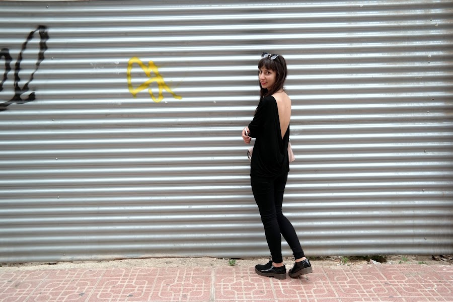 Finally it"s Friday! I hope that you have more desire it. Let"s talk about what interests better, to see if I mind my own haha. As he had long wanted to show you this shirt Romwe that I love, but you know that exams consume my time. Why I love it? Just look at the neckline that leads back. I like it because the view from the front and looks like a simple shirt, no more anything, but when you turn around you see that impressive cleavage What do you think? I combine a total black to make my overall style. I hope you like it. By the way, I expect you to know that store, but you are slow to click and visit because it has things at a great price trend. On Wednesday we are again with a new post!