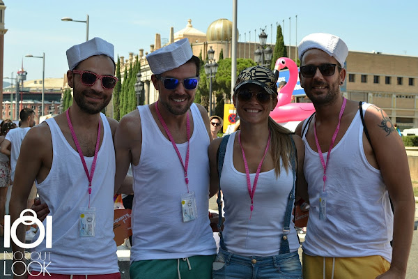 El mejor estilo gótico en la Pride Barcelona fue sin duda para 32 Barcelona Tobacco Shop con ajustados leggins, corsé y mochilas negras que combinaron con impresionantes crestas de plumas negras y detalles de tachuelas además de un maquillaje perfecto