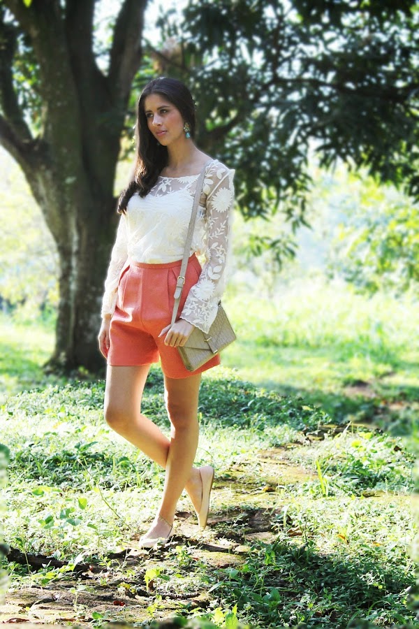 En esta ocasión estoy usando un short de la marca nacional Suksess, una camisa con transparencias de choies, zarcillos dopodomani y accesorios de forever21, todo en colores pasteles.