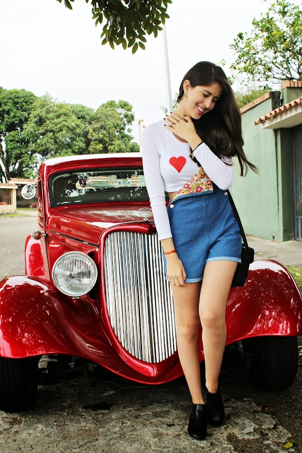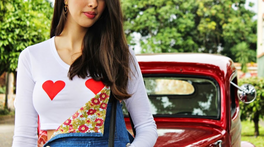 Este cuarto look es perfecto si tus planes son una salida con amigas. Es un look cómodo, fresco y dulce, tal cual como un helado. El overall es de la marca Boconas, son de mi ciudad y todas las cositas que hacen me encantan y son de excelente calidad, este es el básico ese que nunca va a pasar de moda y siempre puedes usar con todo, es decir que es una prenda indispensable en tu closet. No hay nada que me guste más que un overall con un crop top me parece que es algo atrevido y pícaro pero nada vulgar este es de la marca Glam Trendy tienen los mejores precios que he visto de verdad los recomiendo muchísimo y estos corazonsitos son perfectos para san valentín ¿no les parece? para complementar un look totalmente romántico y cursi use unos zarcillos de corazones y anillos también ¿Empalago mucho?