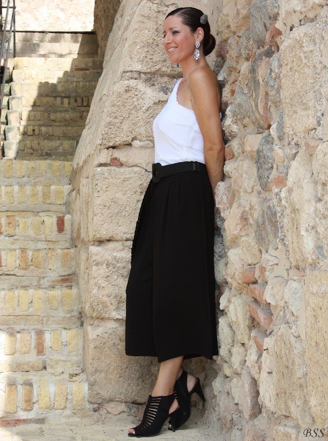 He creado este outfits inspirado en las tendencias actuales utilizando un pantalón capri y añadiendo un top de volantes evocando al espíritu folclórico. Los complementos completan y armonizan un look elegante para lucir durante el día o la noche.