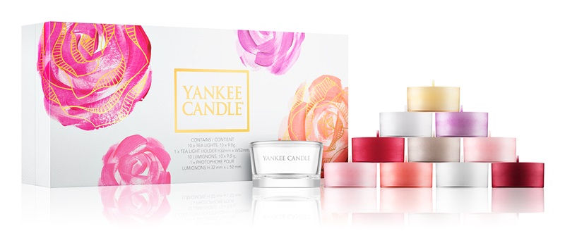 Esta preciosa caja contiene 10 velas de te y un portavelas de cristal, y tiene un precio de 13,19 €.