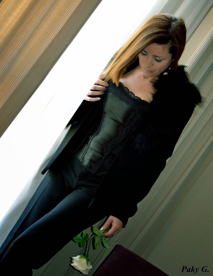 Al fantástico corset le sume una de las tendencias más elegantes de esta temporada, el smoking prenda que inventó uno de mis diseñadores favoritos YSL para las mujeres más carismáticas y que se reinventa año tras año siendo una de las más versátiles del armario femenino.