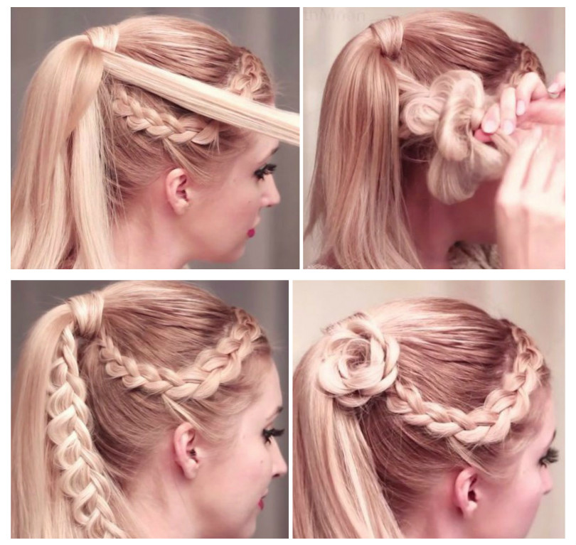 Este espectacular peinado puedes hacerlo con una terminación en flor o dejándolo suelta y con algo de volumen, te invito a que veas el paso a paso de este peinado con cola de caballo y trenza, que a continuación te comparto..