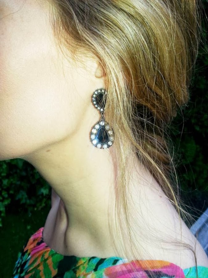 De nuevo me puse sandalias de Nine West, pulsera Forever 21, pendientes Accesorize y bolso préstamo de mi suegra.