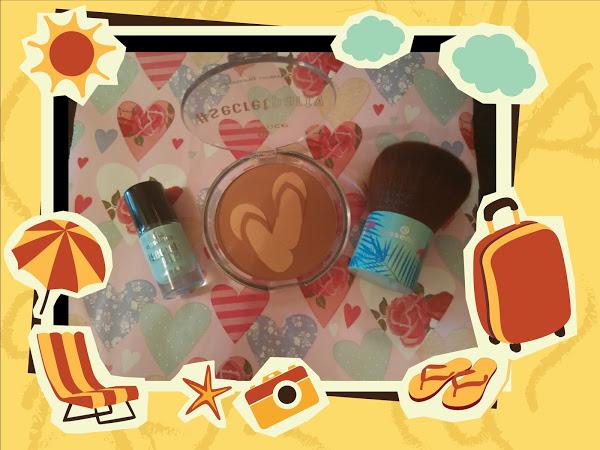 Polvos bronceadores con el dibujo de chanclas en el centro, muy original, no? El marrón no tira a naranja que ya es bueno, no es muy oscuro, es discreto, no tiene mucho brillante. Las chanclas sin embargo, sí, son brillantes, doraditas, genial para utilizarlas solas como iluminador. Así que tienes dos opciones para utilizarlos, mezclados para que quede brillante, o polvos bronceadores menos brillantes e iluminador por separado. La polvera es bastante grande, yo me la esperaba más pequeña al igual que lo siguiente.
