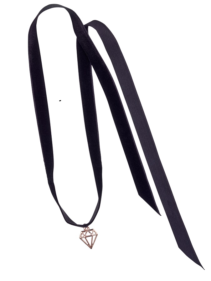 9-VELVET CHOKER: Choker de terciopelo con un bonito colgante en forma de diamante. Se ajusta de forma manual para poder llevarlo como una pulsera o una gargantilla. Su precio. 3,79 euros.