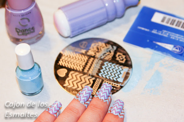 Penúltima entrega del reto orquídea radiante y aprovecho para desenterrar unas fotos de tiempos más cálidos. El tema de la semana era una técnica que ya hubiéramos practicado así que les traigo el estampado clásico. Hacía mucho tiempo que venía envidiando de lejos las manicuras con líneas en zig-zag o chevron y preguntando en el grupo de facebook Adventures in Stamping (si les gusta estampar se los recomiendo muchísimo) me dijeron lisa y llanamente que la mejor placa chevron era la Messy Mansion MM12...y quién soy yo para discutir con semejantes expertas?
