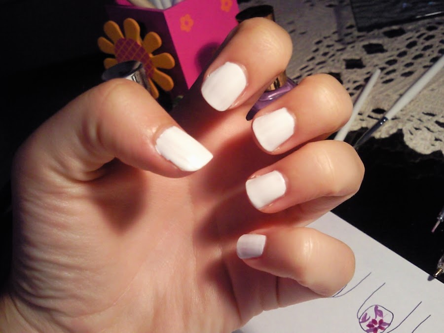 Deciros, tras hacer hecho esta manicura, que si usáis uno tono algo más claro en el fondo, las flores destacarán más. ¡Esto lo comprobé luego! Jejeje.